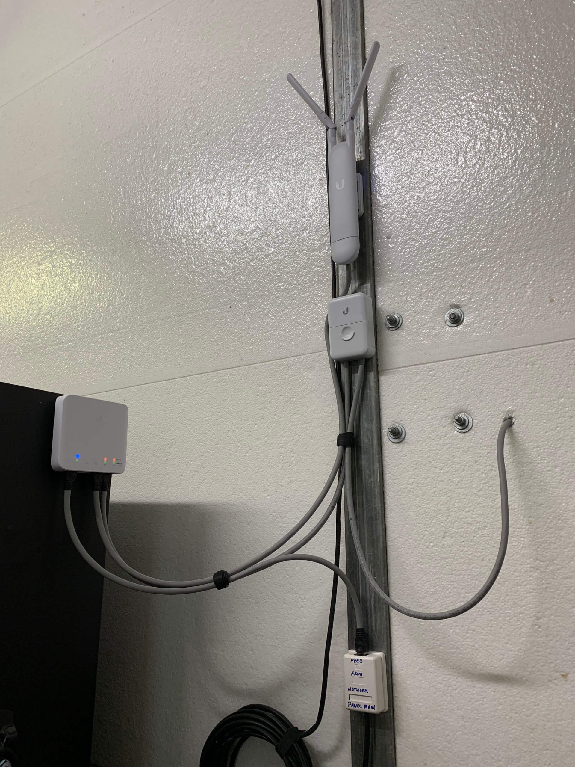 Finally we linked up the building on the far end of the property with the other Nanostation AC and added wireless with a Mesh antenna. Ran a cable from the secondary port on the Nanostation thinking I might be able to use it to uplink the Mesh antenna, could never get that to work for some reason. Ended up putting another Flex Switch in for wired ports and powering everything with injectors….not my proudest network design moment, but hey, sometimes it be like that.